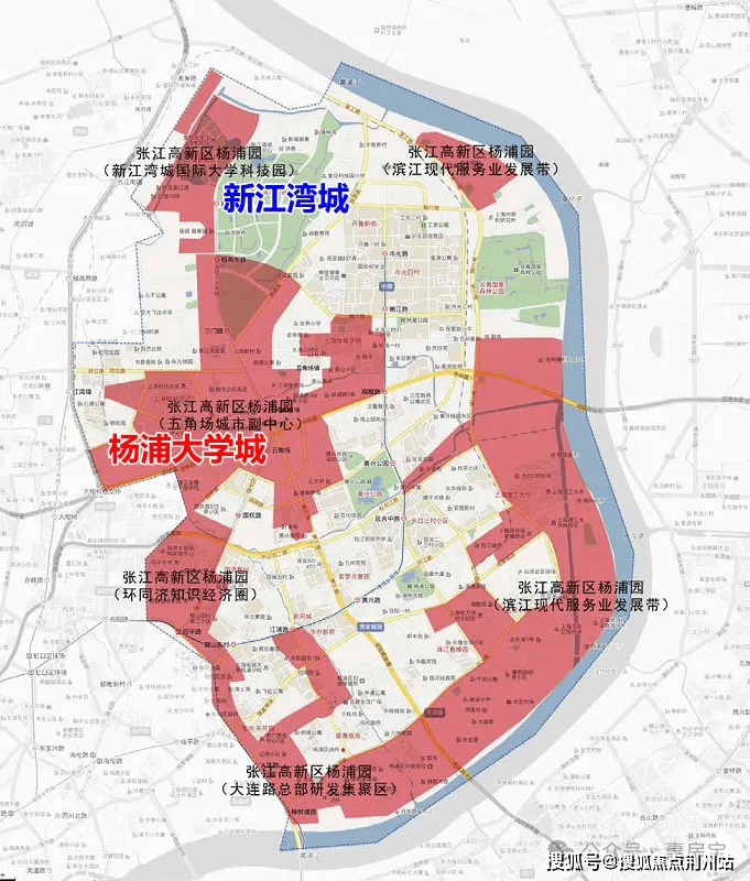 新江湾区域内有复旦、同济、财大等10多所著名高校,100多家科研院所,以及复旦附中、交大附中等重点高中.早在1996,该区域第一个高科技园区“五角场高新技术产业园”正式建立,从此杨浦开始走上产学研一体化道路,比如建设国家创新型试点城区,将杨浦园构建为张江示范区的重要组成部分等.杨浦还打出了一个大大的标语:至2030年,形成“大学的城市、城市的大学”.