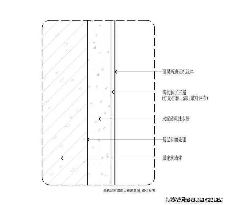 比如 墙面工艺标准, 由原建筑墙体基层界面主体开始,水泥砂浆抹灰层找平,到满批腻子在灯光下仔细打磨三遍,满压玻纤网布包括墙顶部分,最后再两边涂抹外墙无机材料。