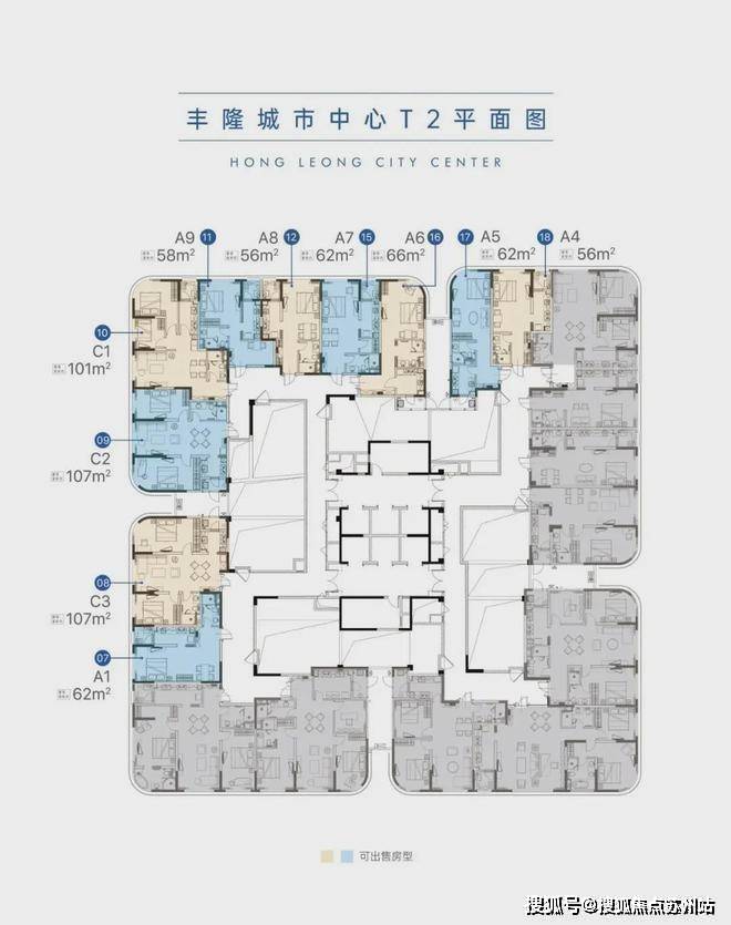丰隆城市中心已经是现房,可售房源均位于T2,楼层12-32层,建面约55-107㎡,精装交付。