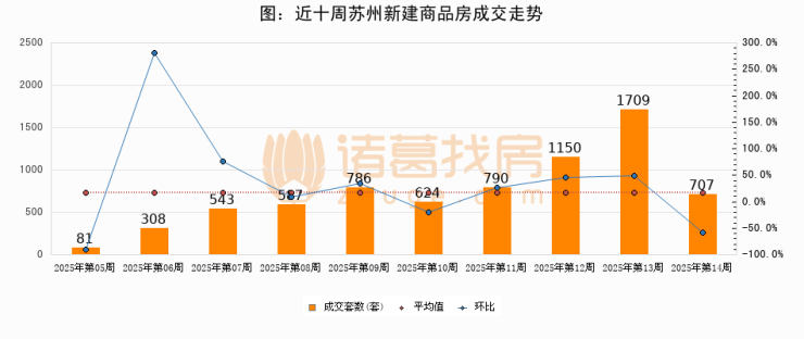 【苏州成交周报】第14周新房成交707套,二手房1283套,涨价房源403套