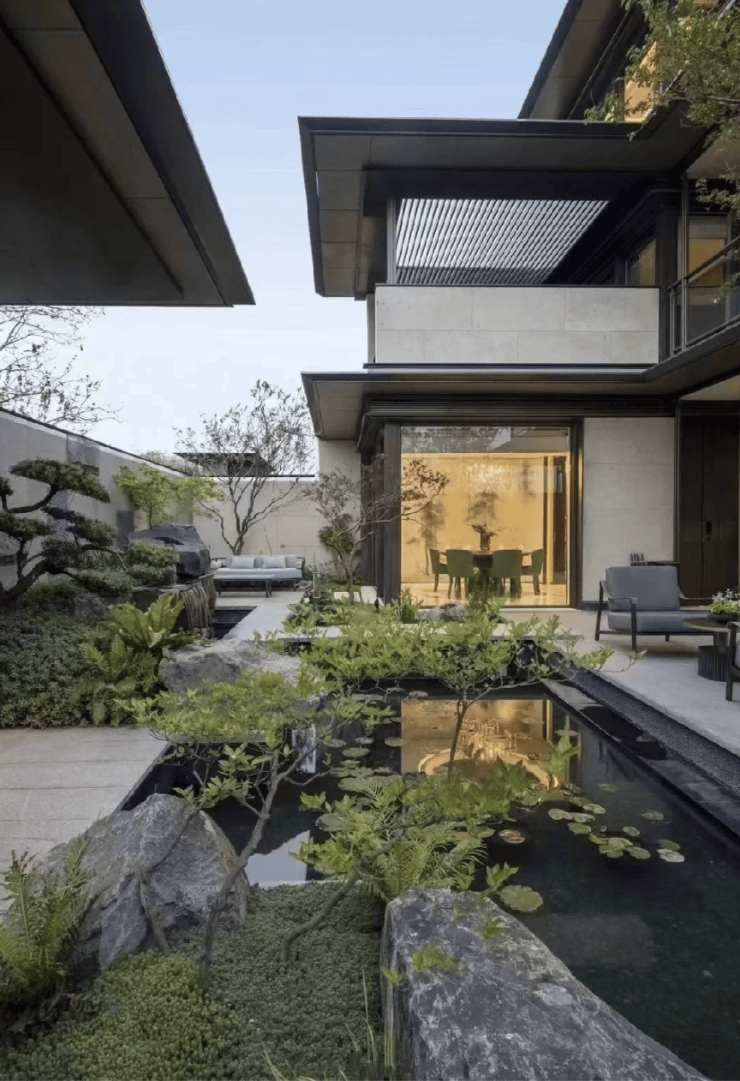 园林设计融入了吴门画派的意境和苏州园林的造园智慧,打造出一座温润、流动的现代东方庭园。同时还规划了下沉式会馆,延续苏商百年会馆文脉,为业主提供运动休憩和圈层会客的雅致空间。