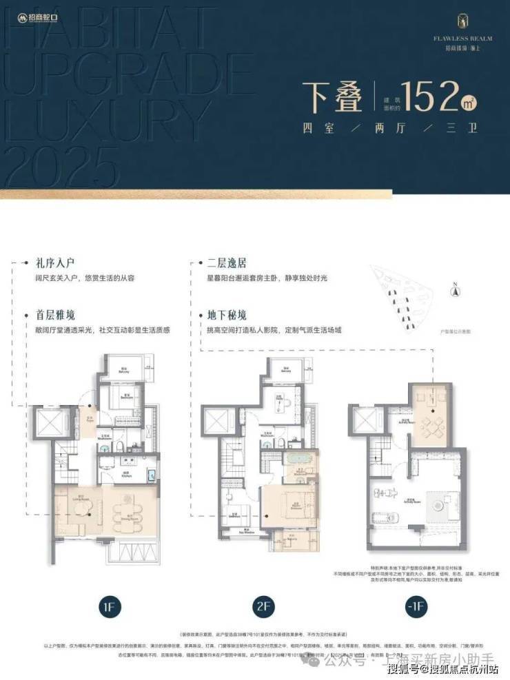 叠墅越级|约146-152㎡水岸墅居√下叠约152㎡海派水岸世家院邸餐客厅无界互动,串联家庭社交场主卧星幕阳台,晨光暮色皆成诗意背景挑高私属地下室,让个人的品味与个性在此尽情施展