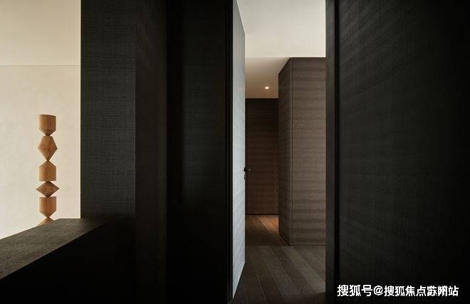 长廊是动静空间的过渡区域,通过光线和艺术品的点缀,让人的视觉体验更加舒服。