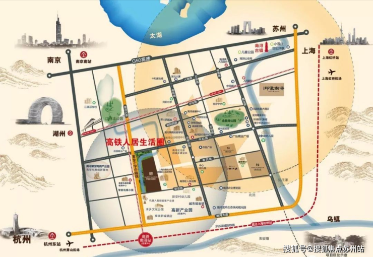 作为千亿新城落子苏州的首席小镇作品,新城·十里锦绣择址南苏州吴江盛泽西,沪苏高铁盛泽站旁,畅享沪、苏、杭三城繁华,坐拥盛泽主商圈醇熟生活,全优人生一步即享。
