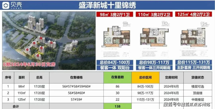 新城·十里锦绣,南苏州60万方沪苏高铁小镇示范区,涵盖高层和洋房,共计5300户。自建约2.5万方社区商业,约3000㎡启航幼儿园,打造全龄社区乐活空间,营造舒适美好生活。