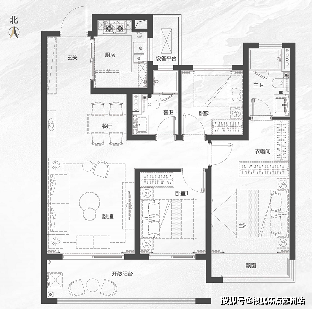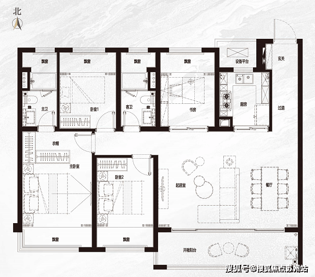② 南向阔景双阳台设计,且全屋赠送6个大飘窗,可360度环幕观景,整体户型使用率非常高,在整个苏州市场都尤为罕见。