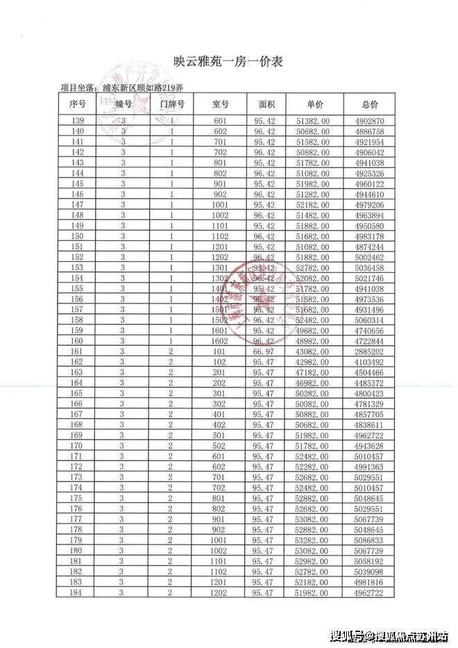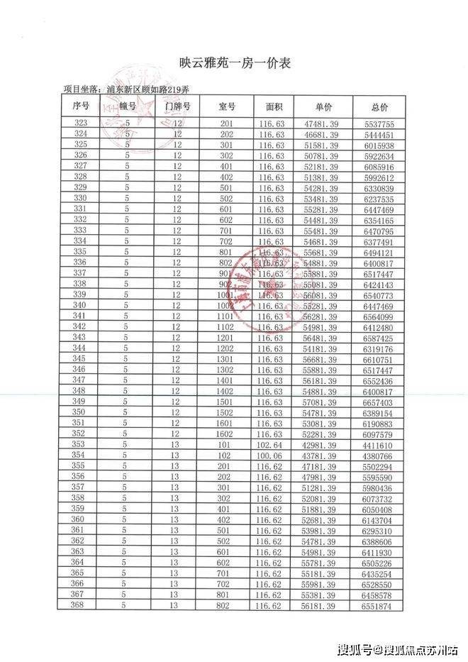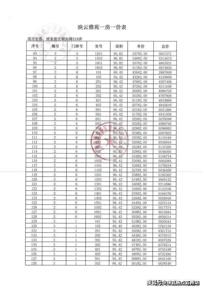 一房一价表