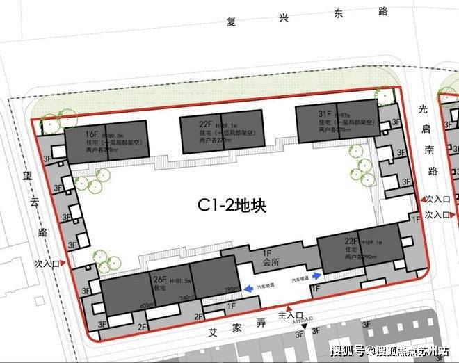 小高层主要位于右下角的260B-01地块,用地面积4750.3㎡,规划有小高层、商业、上海救火联合会遗址和火警钟楼及其他配套建筑。