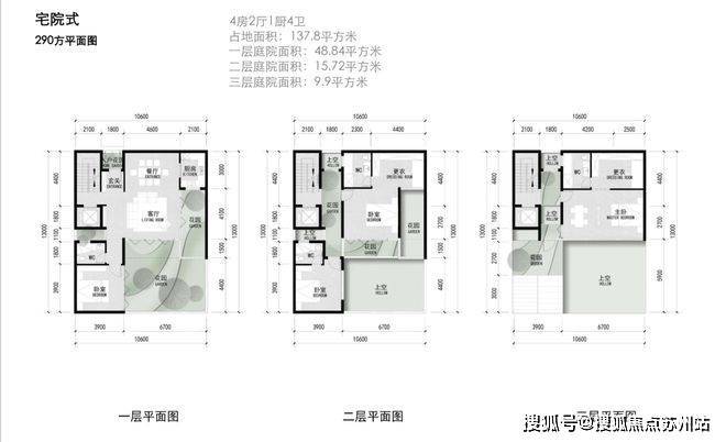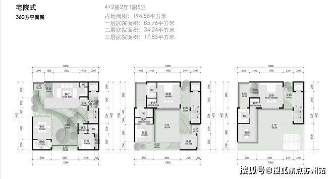 建面约290-360㎡宅院式合院
