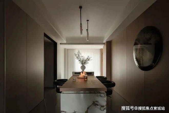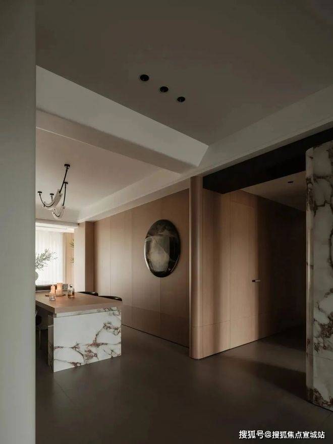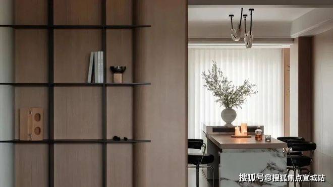 空间的分区拥有不同的情绪表达。厨房以木质包裹墙面,营造出温润的包裹感,与大理石台面的冷冽纹理形成微妙对比,让烹饪成为一件放松的事。
