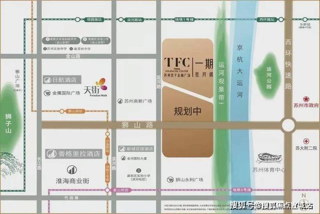 NO.1|项目位置本项目在狮山桥下,京杭大运河旁,占据了新区狮山板块的核心地段,坐享新区繁华商圈,紧邻姑苏古城风韵,集人文精神和高品质生活为一体,将打造为狮山板块乃至苏州市具有代表性的地标建筑。