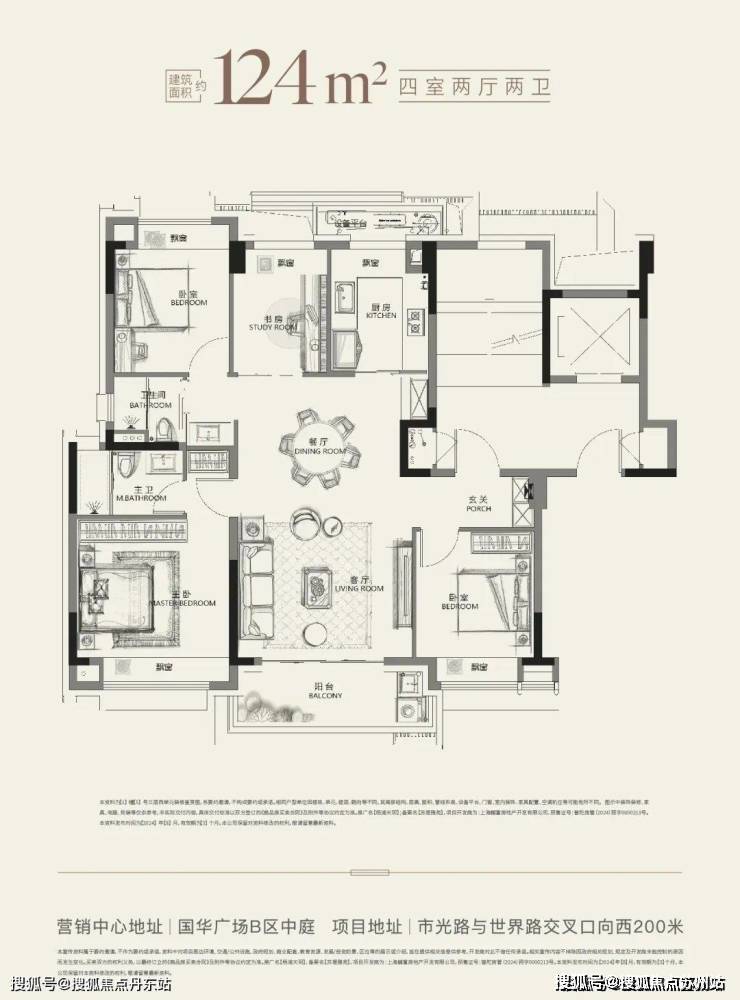 建面约124㎡为5层洋房户型,套数极少,但这真的是上海产品力更高的户型了。