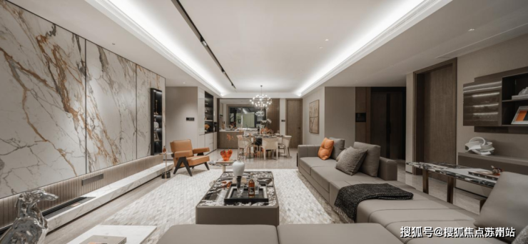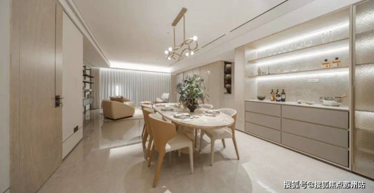 室内空间随处可见的数十项匠心设计,全方位阐释“杭派精工”的改善理念。比如内嵌无主灯设计简约大气,悬浮踢脚线隐而不露,与客餐厅简一密缝连纹拼花地砖浑然一体,在不经意的地方,处处展现美的营造。