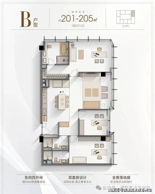 5️⃣户型优势:4.2米层高,全落地窗设计,多套房设计满足三代同堂