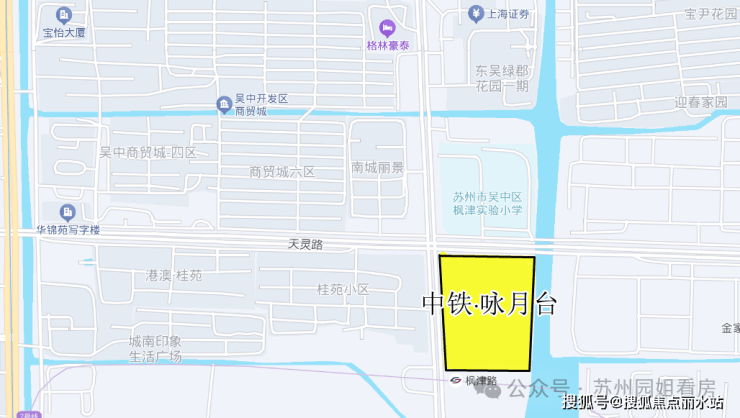 中铁·咏月台位于吴中城南枫津路东侧、天灵路南侧,家门口就是地铁7号线枫津路站。