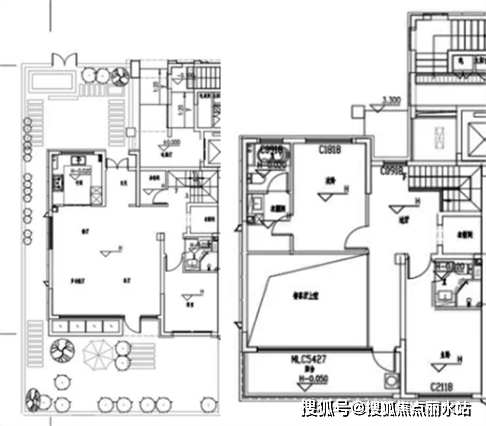 上叠建面约176㎡,客厅挑高,经改造同样可做4房3卫,南北双露台+星空屋顶露台。