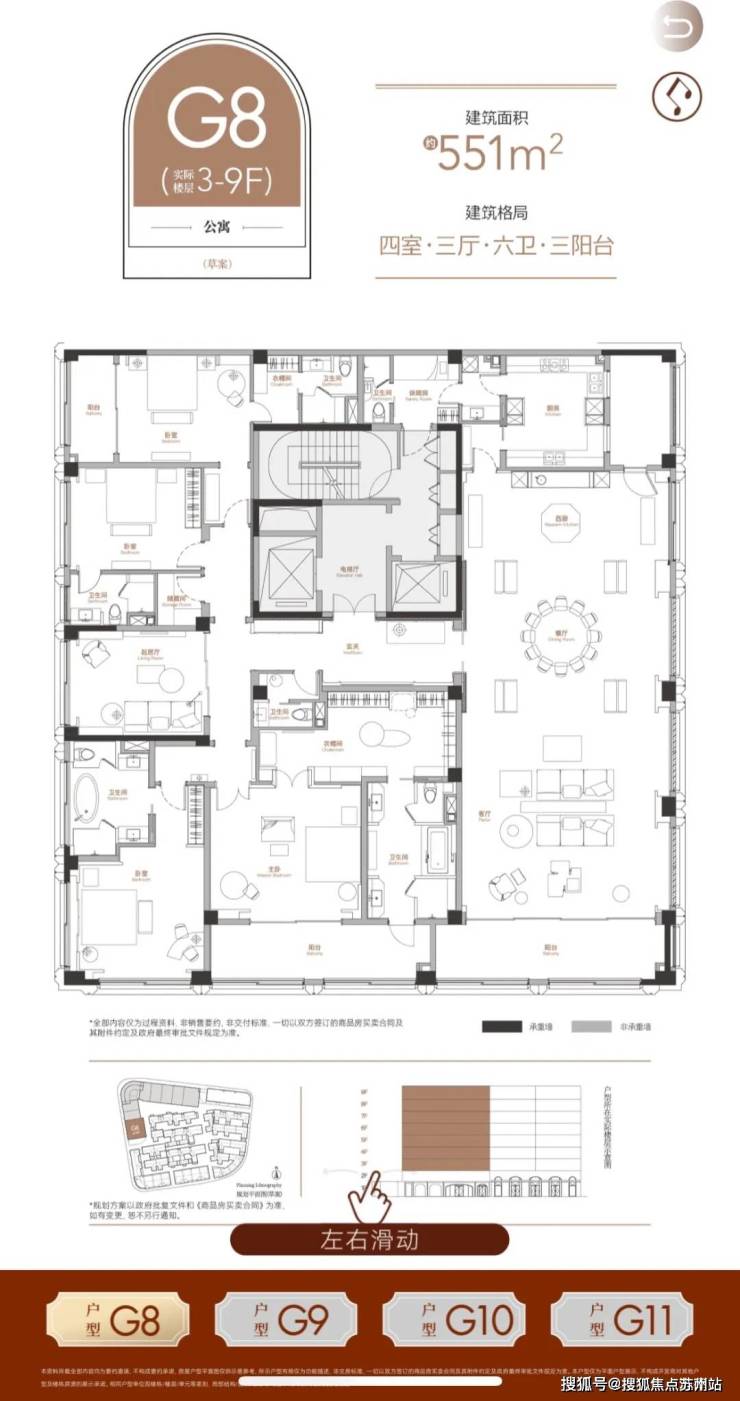 项目的平层户型无论是功能性还是尺度感都足以承载一个大家族的居住需求。十字中轴的布局,方正无比的格局,大开间朝南的设计都极大的保障了每一位家庭成员的私密性和舒适度!