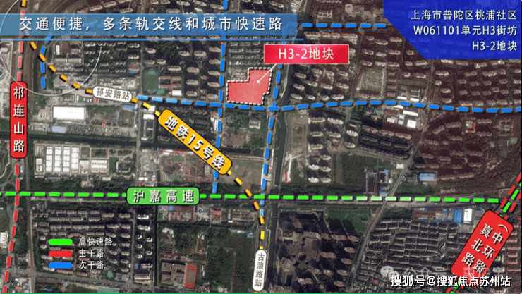 轨交方面,当下区域内已有11/15号线与多个轨交站点,能够直通真如、静安寺等城市节点;项目距15号线祁安路站直线距离约500米,步行可达。未来,20和26号轨道交通线有望途经区域,加强桃浦与大宁、江湾、五角场的交通联系。道路方面,S5沪嘉高速(中环路~沪嘉高速-嘉闵高架联络线)功能提升工程日前迎来正式立项,桃浦智创城紧密连入S5沪嘉高速抬升段,“高架+地面”的双层级交通规划将加速桃浦与周边区域的融通发展,也强化了普陀通往嘉定以及沪苏省际高速的枢纽作用。