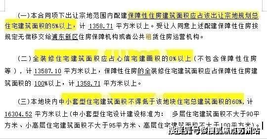 根据出让合同显示,项目还需配建5%以上的保障性住房,全装修比例50%,并要求中小套户型不得低于住宅总建筑面积的60%。