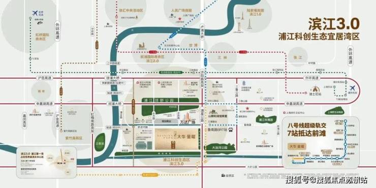项目距离浦江线汇臻路站约1.3KM,5站即达沈杜公路站并与8号线换乘,可一线直达前滩。或通过BRT快线可一站无缝对接8号线沈杜公路!