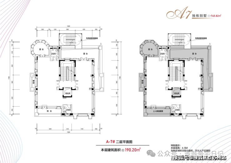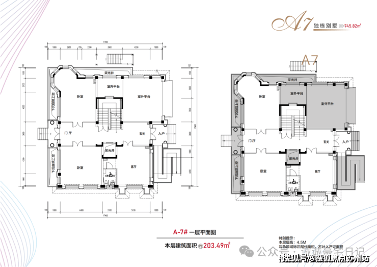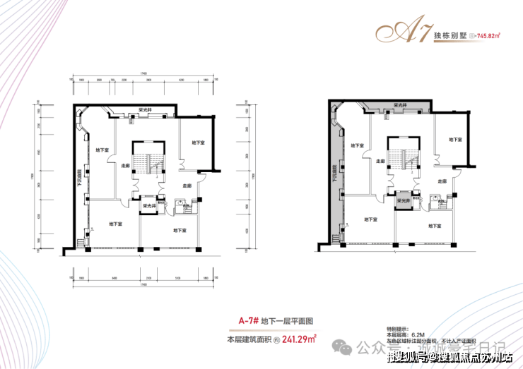 布局:地上三层(4.5米层高)+地下一层(6.2米层高)+900㎡花园