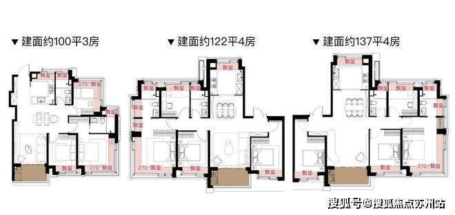 约122、137㎡户通过差异化非承重墙布局,满足不同家庭结构的需求。