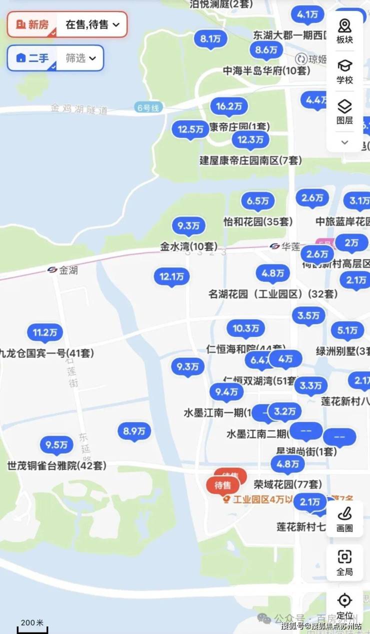 这一地段是苏州公认的低密豪宅区,周边被九龙仓国宾1号、湖滨四季等均价10万+的豪宅项目包围。项目南侧为无遮挡绿地,使业主可享受约500米南向湖岸线,推窗即见“城市与自然共生”的顶级视野。