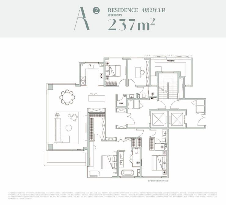 户型设计:86-99㎡户型采用全明格局与 LDK 一体化设计;199-249㎡大平层配置 270° 天幕光厅、双主卧套间及一梯一户,层高 3.15 米。部分户型如 125㎡三房采用大横厅设计,南向面宽达 11 米,153㎡四房采用四开间朝南设计,南向面宽达 14.2 米。
