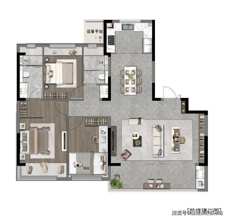 立峯 | 建筑面积约103㎡狮山全能王 三房两厅两卫设计,约6.8米双阳台,U型厨房,全能主卧套房,小户型也能拥有大空间。