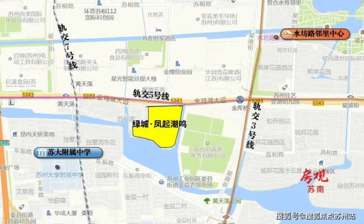 周边3、5、7号线三轨交汇,3站即达苏州中心,北侧紧邻金鸡湖大道,往西直通古城、往东直达湖东。