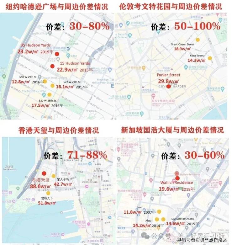 我们来看几个享誉全球的成功案例, 纽约哈德逊广场,伦敦考文特花园,新加坡国浩大厦,香港天玺,这些顶级公寓都有一些共性点: