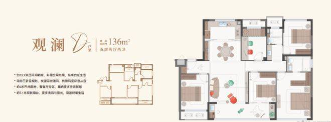 樾澜铭院售楼处营销中心:400-8828-814樾澜铭院售楼处电话/地址☎:400-882-8814(开发商热线)建面约136㎡户型,做到了5房2卫,南向三个卧室,四开间朝南,厨房开间更是达到约4米,南向双联阳台面宽约7.1米,尺度感拉满。