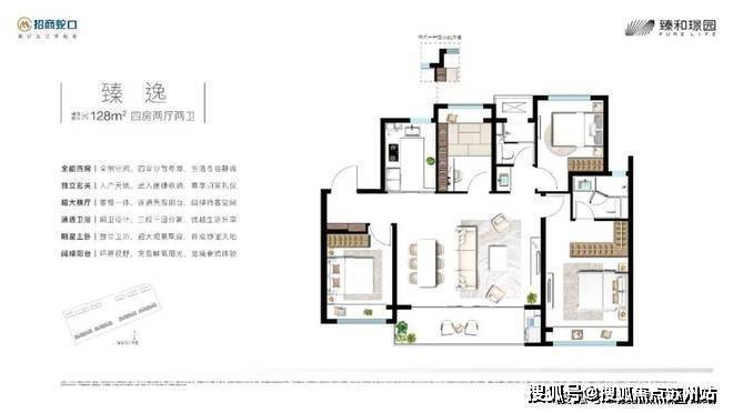 招商臻和璟园售楼处电话:400-9696-224 该户型南侧为活水河道及市政景观,景观视野俱佳。