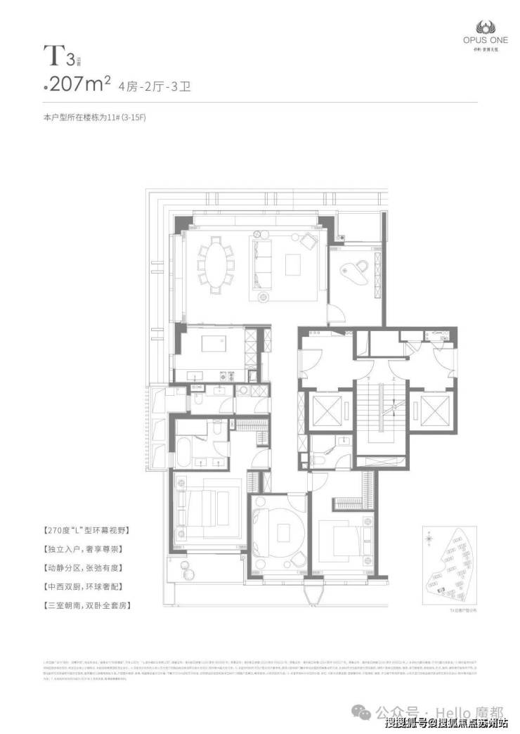 • 户型面积:190-207㎡大户型,3-4房设计,满足高端需求