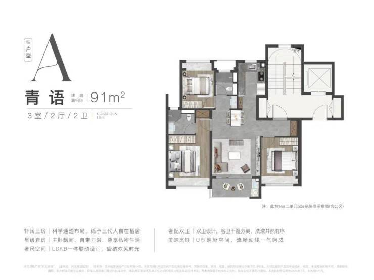 约91㎡三房两卫:经典小户型,功能齐全,适合首置家庭。