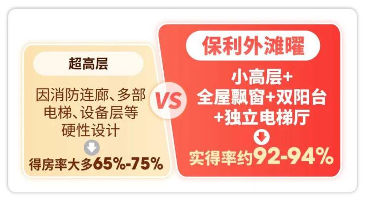 而保利外滩曜更是做到了:项目全系户型标配“全屋飘窗(全赠送且可改造)+双阳台(半赠送)+独立电梯厅”,实得率高达约92-94%。