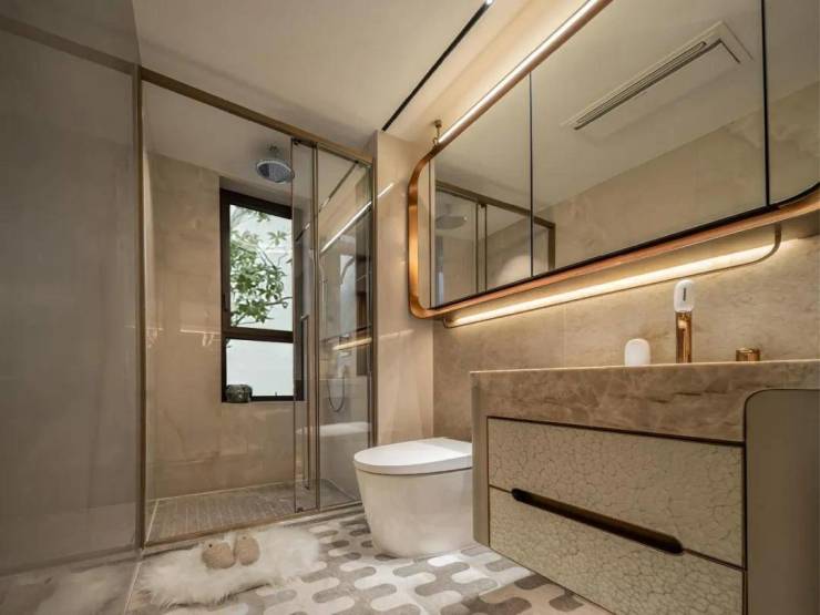 所有户型的主卫标配了专属的美妆三件套,把院线级 SPA 体验搬进家:
