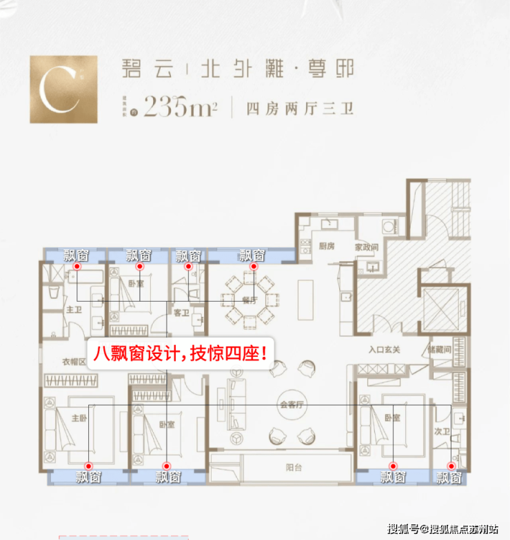 建面约235㎡户型更是做到南北通透+四开间朝南+南向大宽厅的格局,让业主起居之间沐浴充足阳光。