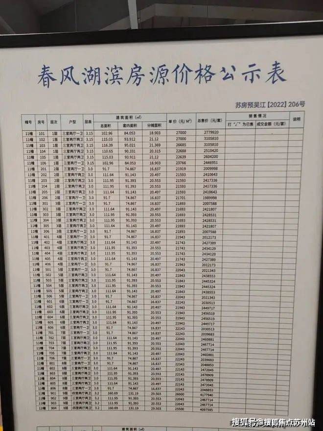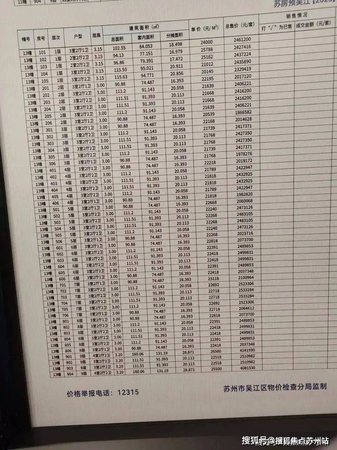 一房一价表: