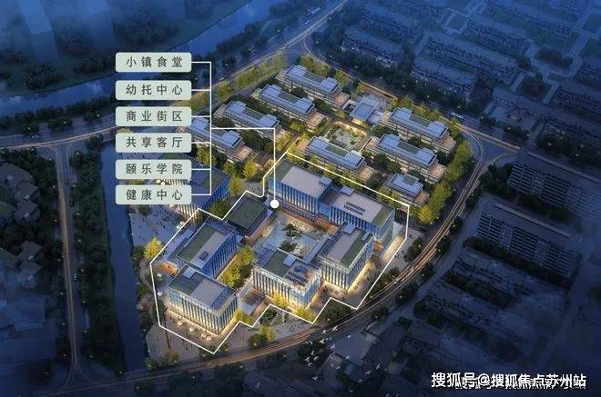 小镇中心内有共享客厅、多功能剧场、颐乐学院、幼托中心、健康管理中心、小镇食堂、精品超市、特色餐饮、宠物门店、洗衣店等业态。
