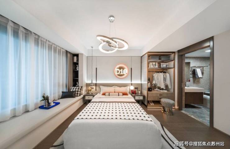 ◎套房式主卧,为业主提供尊贵享受与独处空间,专属衣帽间与独立卫浴,将优雅和从容刻写于空间肌理,在追求私密与友好陪伴中,寻找生活维度的自在平衡,全面满足对生活的高品质要求。