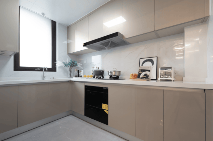 厨房:烟机、灶具、热水器,定制橱柜,L型设计,操作空间大、收纳足;