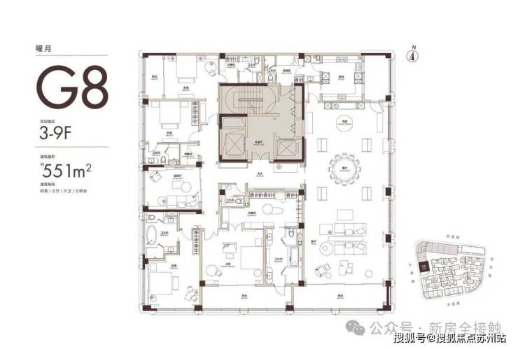 南向客厅灵动分区,双采光庭院引光入室,多卫设计便捷舒适。