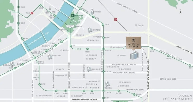 路网:紧邻通城高架、空港高架、东湖高架、机场城市大道,自驾15分钟可达钱江新城、滨江互联网小镇、萧山老城商圈。