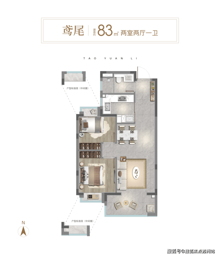 建筑面积约105㎡户型样板间,得房率达到约78%,相对传统“2+1房”设计,可以做到正三房,即每个房间可以摆下大床与衣柜,为每位家庭成员提供完整居住功能。
