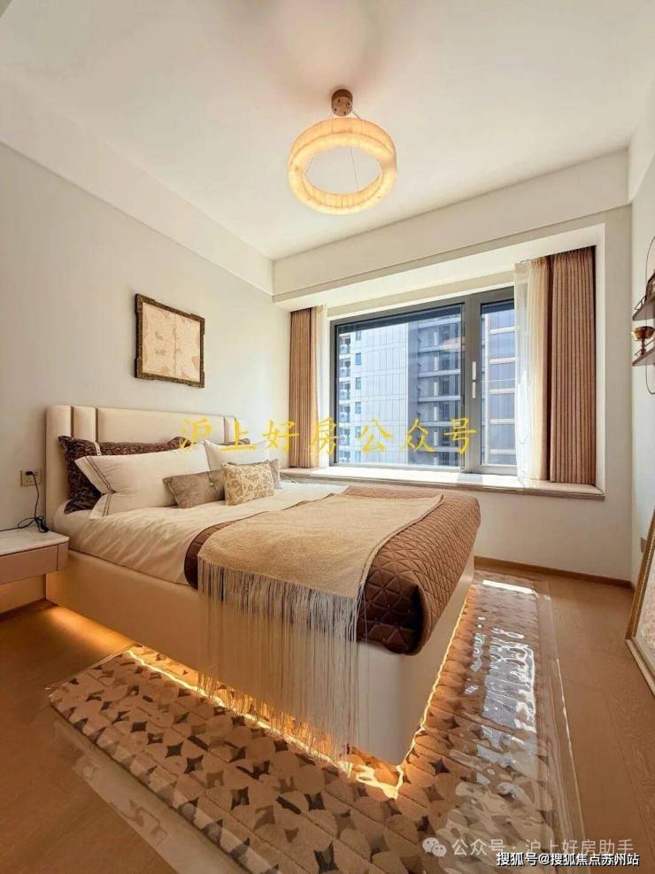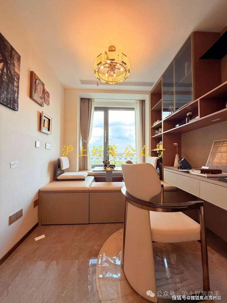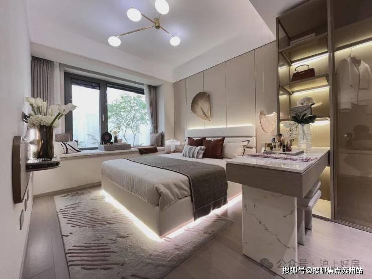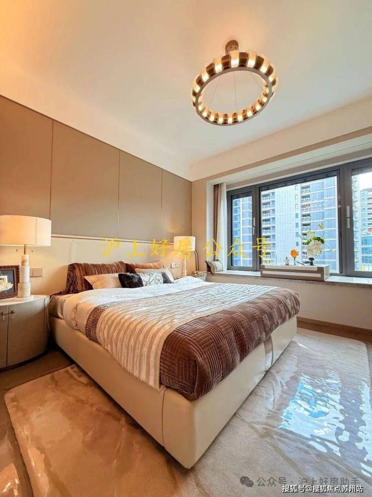 主卧豪华套房,预留衣帽间空间,配备独立卫浴,且配置双台盆+大浴缸,以五星级酒店式的卫浴配置,演绎居家生活的奢享;主卧打造南向大飘窗,配合以转角采光窗,呈现未来轻办公与午后茶饮的最佳空间。