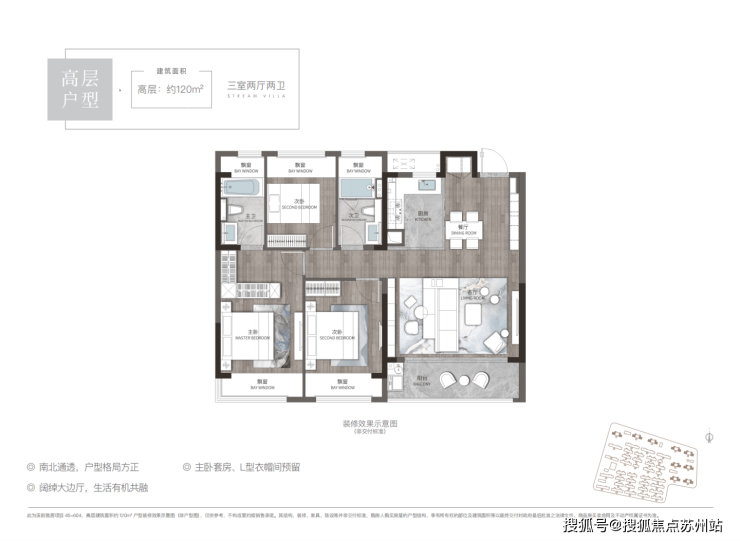 【建面120㎡3居】价格待定-分布于46#,1梯2户,层高3.00米,总楼层25F