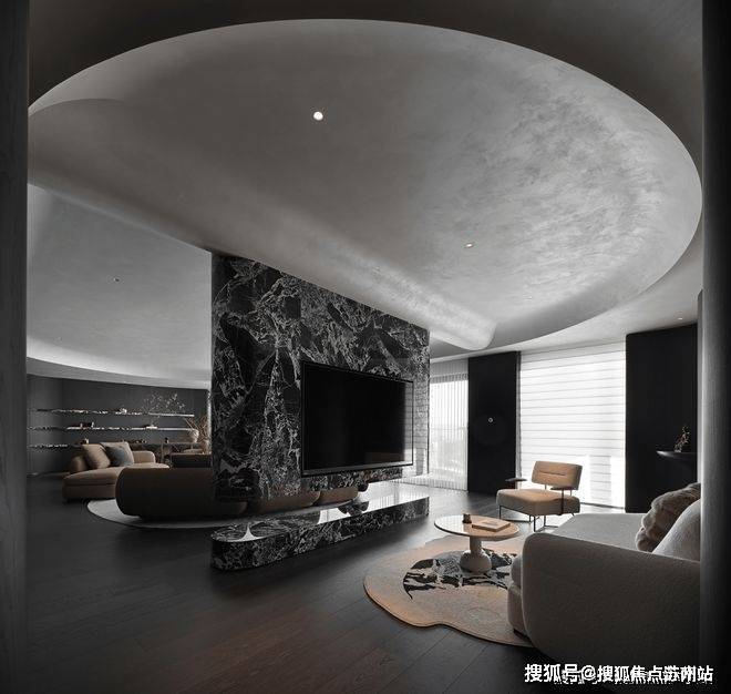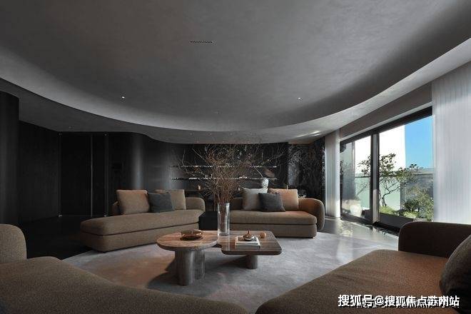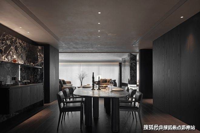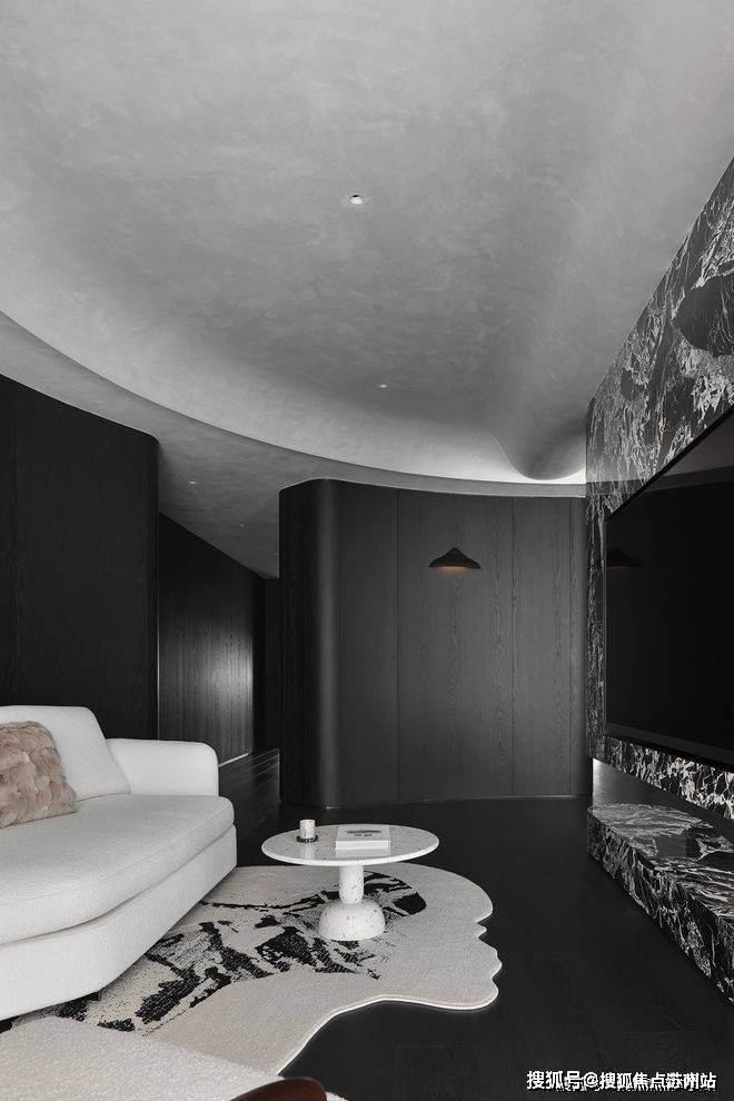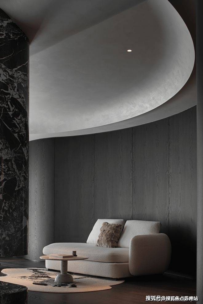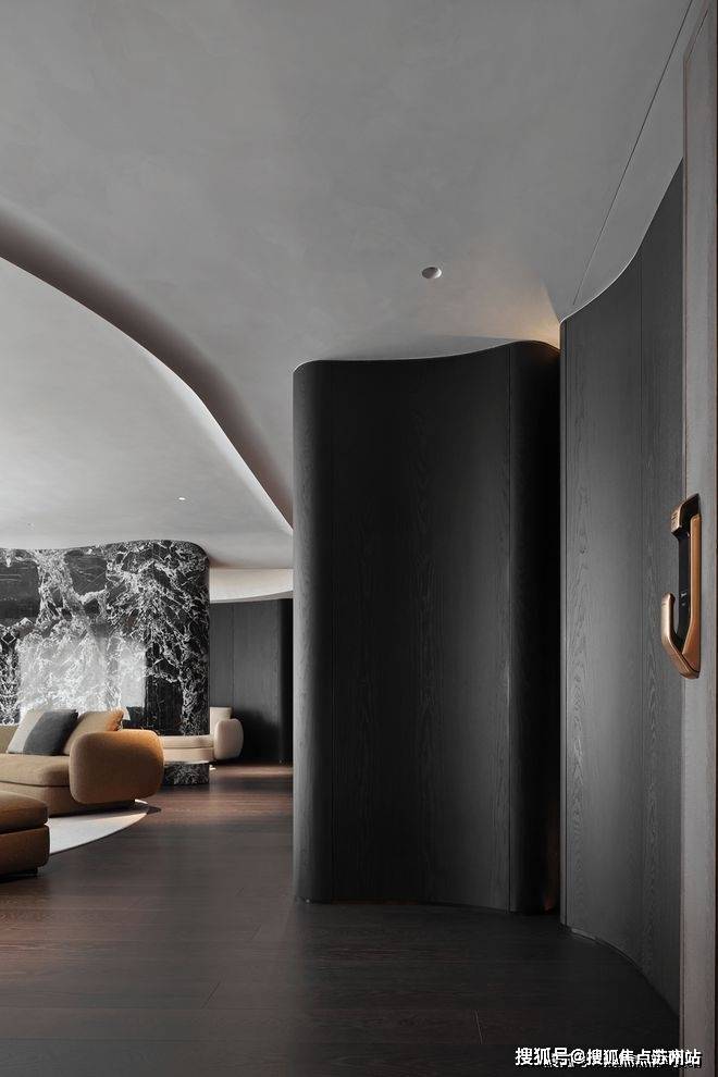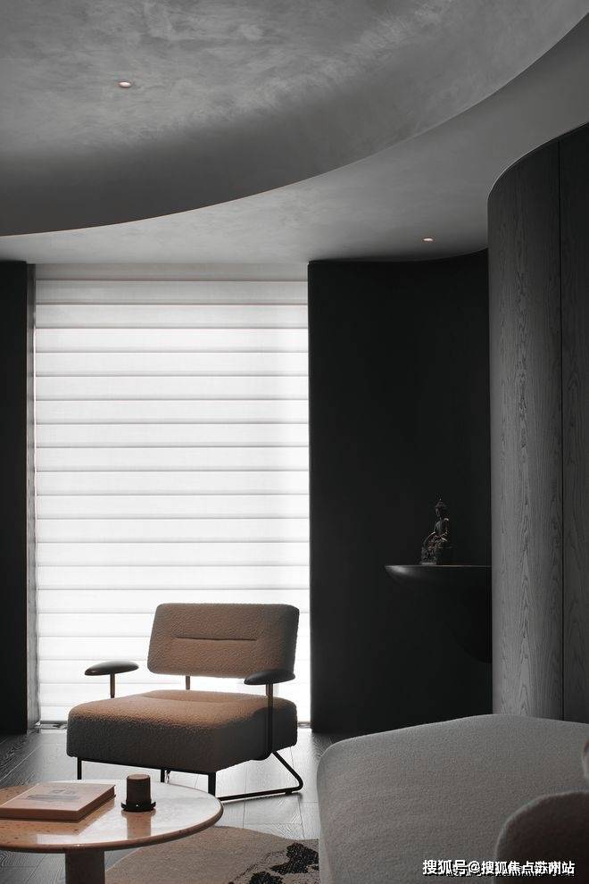 业主的想法与执著设计的理念不谋而合,满足功能性需求后,以“隐于形的诗意”为核心,通过精心策划,打破了线性空间的固有逻辑,于蜿蜒的曲线形态与深色空间画布中,缔造出明朗大气、优雅静谧的氛围感。