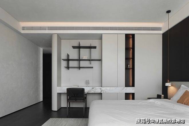 通过动线设计让睡眠区与衣帽、洗漱场景自然衔接,富有质感的木元素、艺术涂料、玻璃及金属材质,让居住者能一直处于比较自由和轻松的状态。