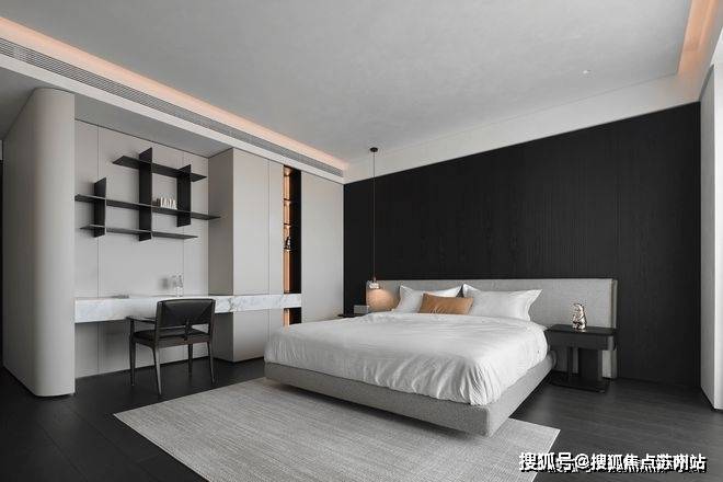 卧室空间更为重视尺度感与氛围的营造,在色彩、灯光及温润材质的互相映衬下,让疲惫的身心得到栖息。